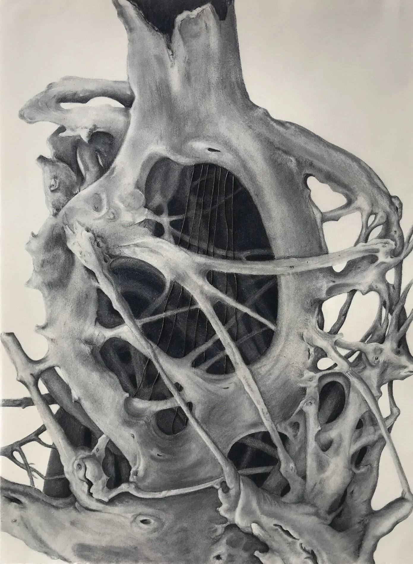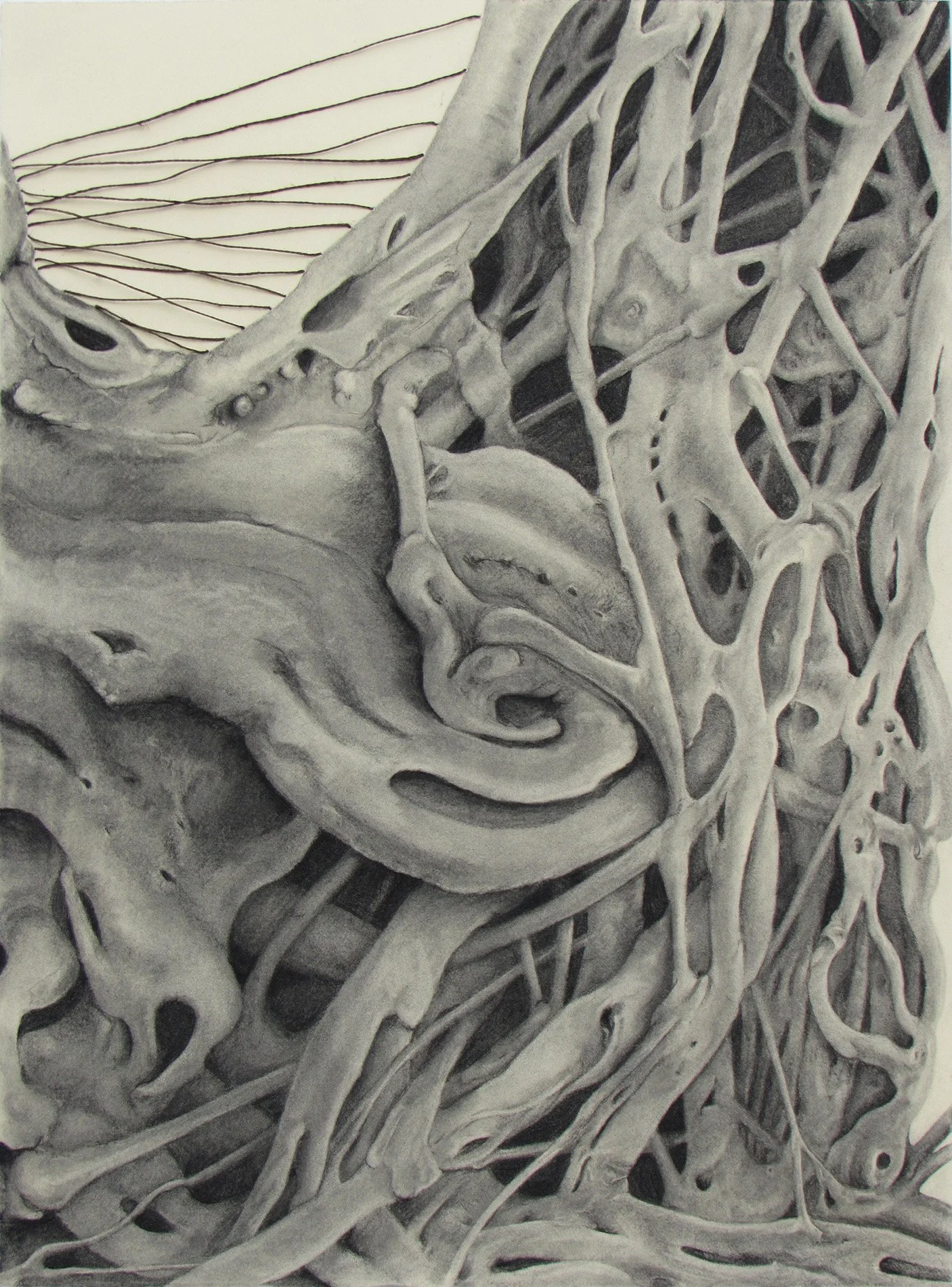 Plants that have migrated to areas far from their origin can be considered invasive. Drawing non-native plants such as kudzu, tamarisk and strangler fig allows me to investigate layers: exploring the form to reveal what is inside, beneath, and below the surface of the plant/self.